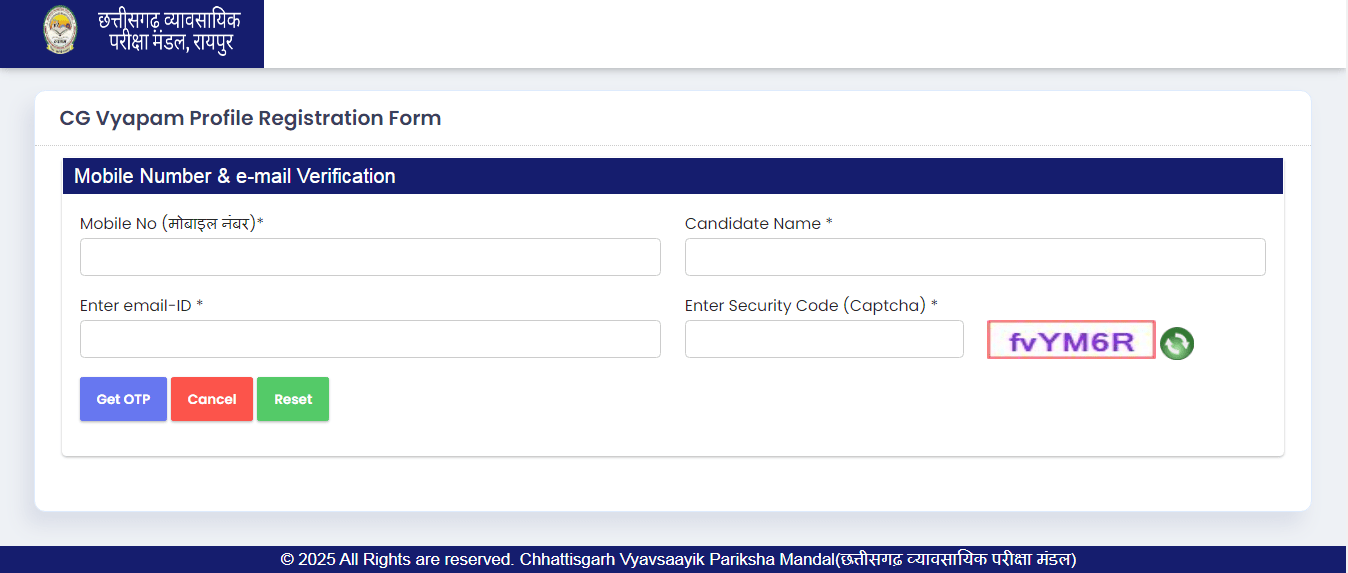 Step 1 – New Registration Earlier than Apply On-line In CG Vyapam Lab Attendant Recruitment 2025