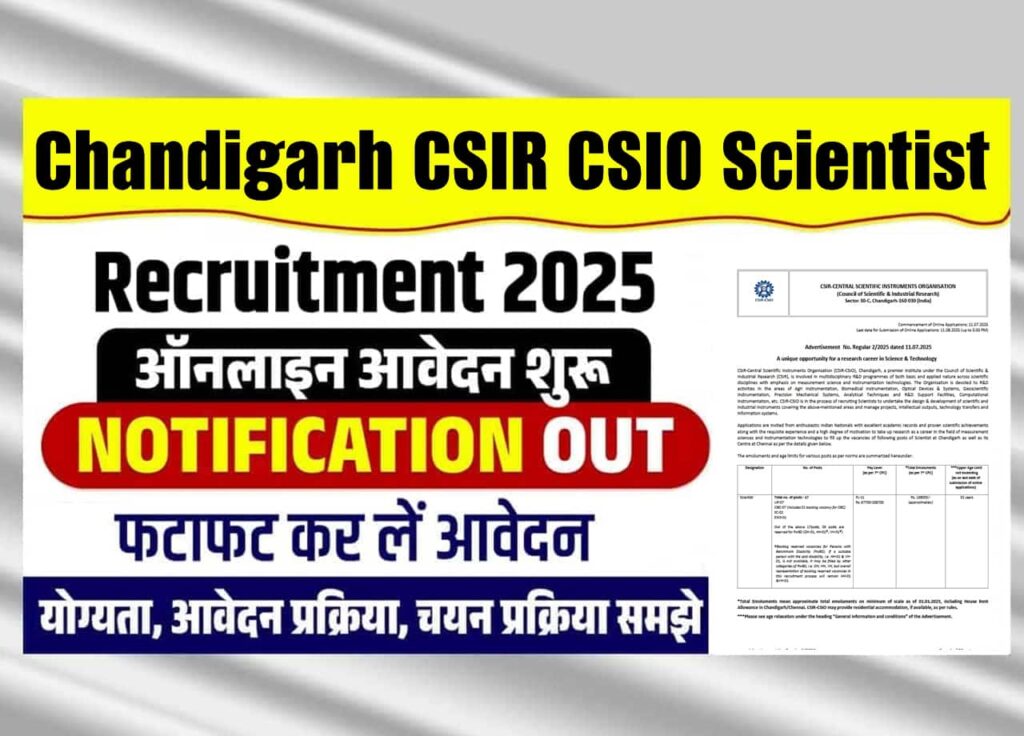 Chandigarh CSIR CSIO ने निकाली Scientist की नई भर्ती, जाने क्या है पूरी भर्ती, आवेदन प्रक्रिया और अप्लाई करने की लास्ट डेट – Chandigarh CSIR CSIO Scientist Recruitment 2025?
