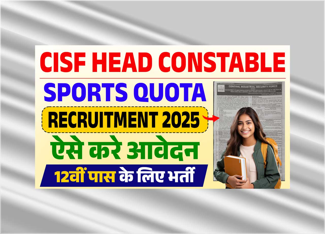 CISF ने निकाली 12वीं पास हेतु स्पोर्ट्स कोटा के तहत हेड कॉन्स्टेबल की नई भर्ती, जाने क्या है पूरी भर्ती, आवेदन प्रक्रिया और आवेदन करने की अन्तिम तिथि – CISF Head Constable Sports activities Quota Recruitment 2025?
