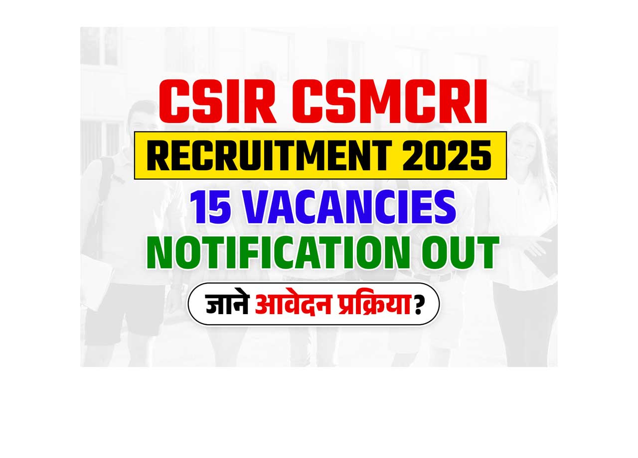 CSIR CSMCRI Recruitment 2025: 12th Pass 15 पदों पर निकली भर्ती, आवेदन शुरू, ऐसे करें अप्लाई!