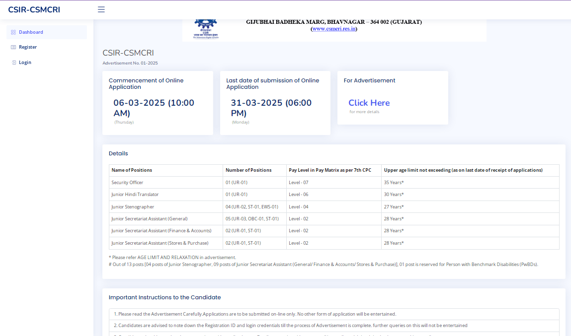 Official Web site of CSIR CSMCRI Recruitment 2025?