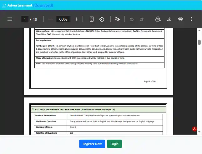 - होम पेज पर Recruitment सेक्शन में ‘Direct Recruitment for the Publish of Multi Tasking Employees (MTS) – Advt. No. R&C/615/2026’ लिंक ढूंढें और क्लिक करें।