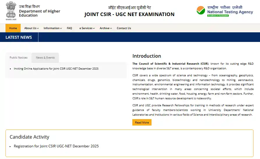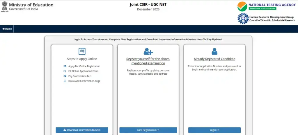 - सबसे पहले CSIR UGC NET की आधिकारिक वेबसाइट csirnet.nta.nic.in पर जाएं।