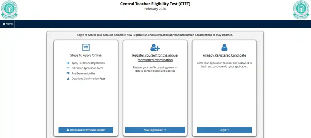 CTET February 2026 के लिए आवेदन करने के लिए आपको ctet.nic.in की वेबसाइट से ऑनलाइन माध्यम से ही आवेदन करना होगा। इसकी पूरी प्रक्रिया के लिए नीचे दिए गए स्टेप्स को फॉलो करें: