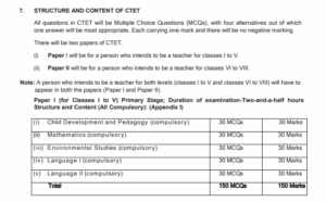 CTET परीक्षा की कुल अवधि 2 घंटे 30 मिनट होती है। इस समय में उम्मीदवारों को 150 प्रश्न हल करने होते हैं। समय प्रबंधन इस परीक्षा में सफलता के लिए बहुत जरूरी है।