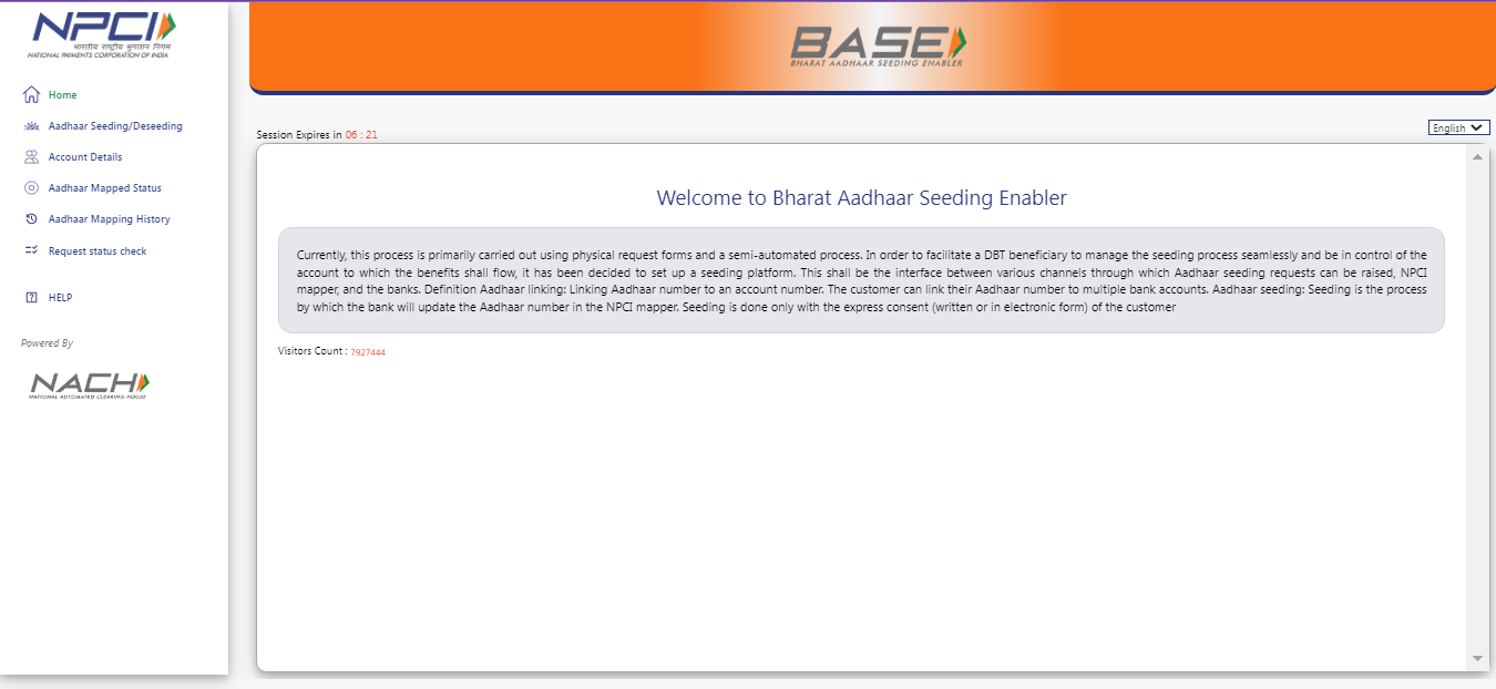 - DBT Allow Disable Standing Verify 2025 करने के लिए सर्वप्रथम आपको NPCI (Nationwide Funds Company of India) की Official Web site के होम – पेज पर आना होगा जो कि, इस प्रकार का होगा –