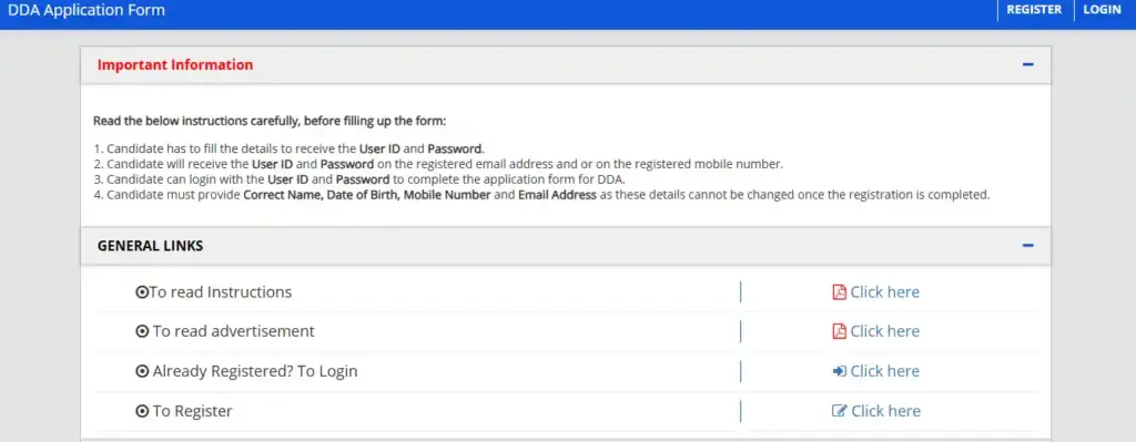 - सबसे पहले DDA की आधिकारिक वेबसाइट dda.gov.in पर जाएं।