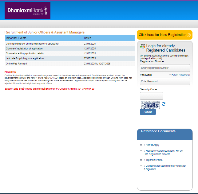 Step 1 – New Candidate Registration Earlier than On-line Apply In Dhanlaxmi Financial institution Recruitment 2025