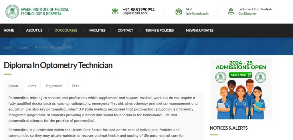 - Fast Profession Begin: आप सिर्फ 2 साल में एक अच्छा educated Optometry Technician बन सकते हैं और hospitals, clinics, eye-care centres या optical shops में काम शुरू कर सकते हैं।