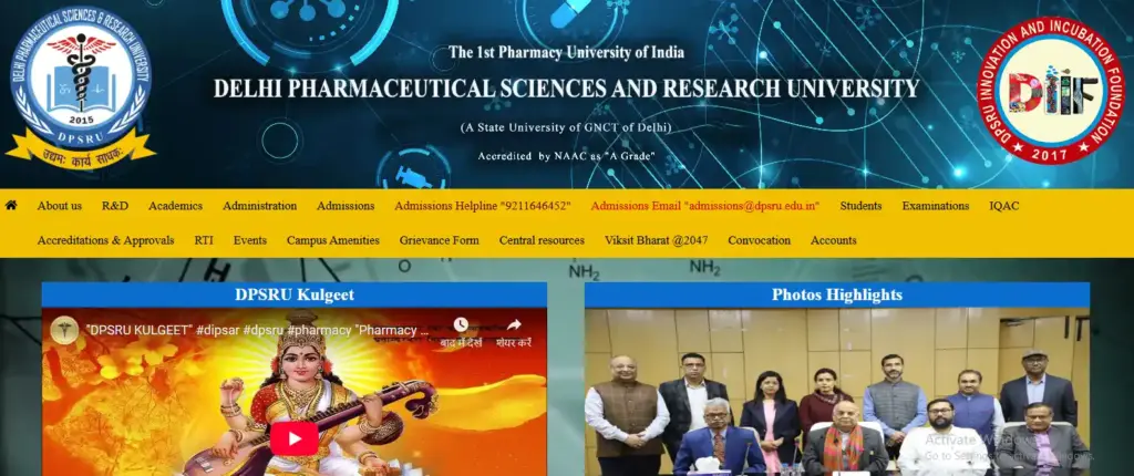 Official website of DIPSAR, New Delhi – offering D.Pharm course