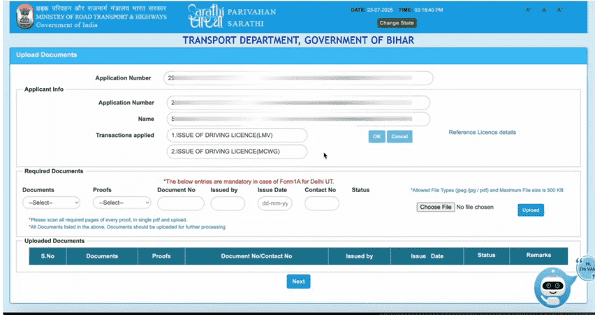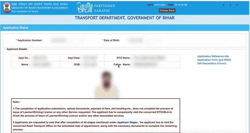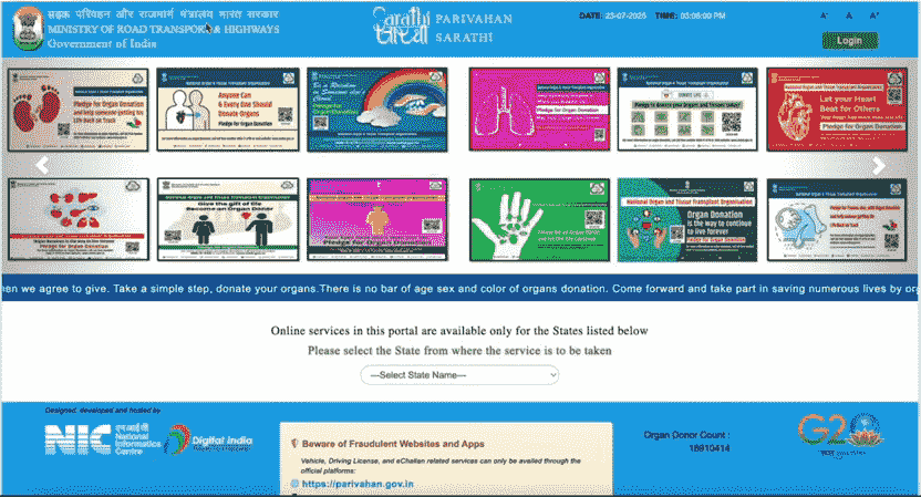 DL Online Apply After LL Official Website Screenshot.