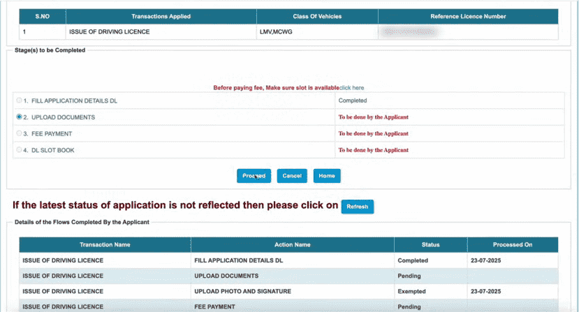 • अब यहां पर आपको DL Slot Reserving के विकल्प का चयन करके Proceed के विकल्प पर क्लिक करना होगा,