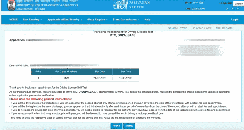 साथ ही साथ आपको बता दें कि, DL Apply After Studying License के लिए आपको अपने साथ अपना लर्निंग लाईसेंस नंबर और रजिस्ट्रर्ड मोबाइल नंबर को साथ मे तैयार रखना होगा ताकि आप आसानी से लर्निंग लाईसेंस के बाद परमानेन्ट लाईसेंस के लिए अप्लाई करके ड्राईविंग टेस्ट हेतु स्लॉट बुक कर सकें।