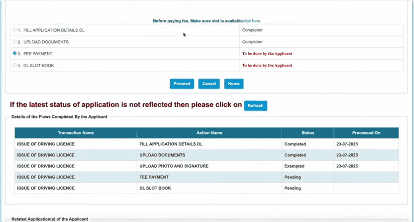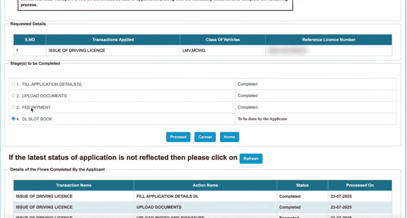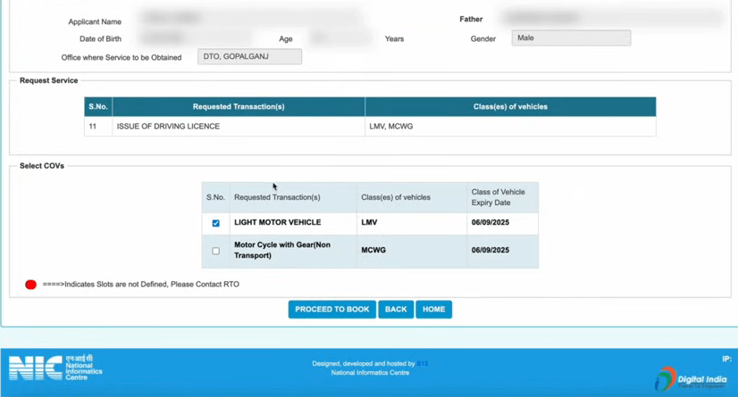 - अब यहां पर आपको DL Slot Reserving के विकल्प का चयन करके Proceed के विकल्प पर क्लिक करना होगा,