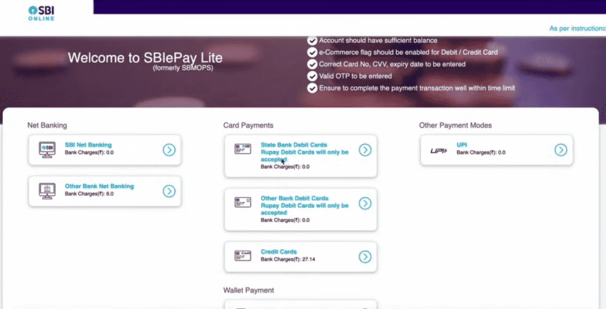 थर्ड स्टेप – एप्लीकेशन फीस का पेमेंट करें