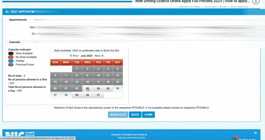 - अब यहां पर आपको अपनी सुविधानुसार, किसी एक डेट का चयन करके अपने स्लॉट को बुक कर लेना होगा,