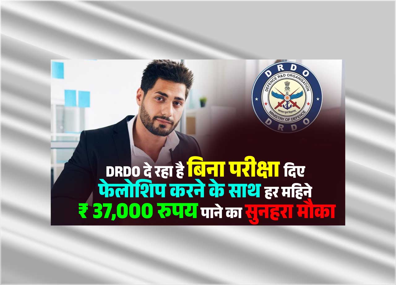 DRDO Fellowship: क्या आप भी बिना कोई परीक्षा दिए फेलोशिप करना चाहते है जिसमे आपको हर महिने ₹ 37,000 का स्टीपेंड और साथ मे महंगाई भत्ता ( HRA ) भी मिले तो हमारा यह आर्टिकल केवल औऱ केवल आपके लिए है जिसमे हम, आपको विस्तार से DRDO Fellowship के बारे बतायेगें जिसकी पूरी – पूरी जानकारी प्राप्त करने के लिए प्रत्येक अभ्यर्थी व उम्मीदवार को ध्यानपूर्वक इस आर्टिकल को अन्त तक पढ़ना चाहिए ताकि आप पूरी – पूरी जानकारी प्राप्त कर सकें।