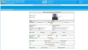 - क्लिक करने के बाद आपको आपके ड्राईविंग लाईसेंस की जानकारी देखने को मिलेगी जो कि, इस प्रकार की होगी –