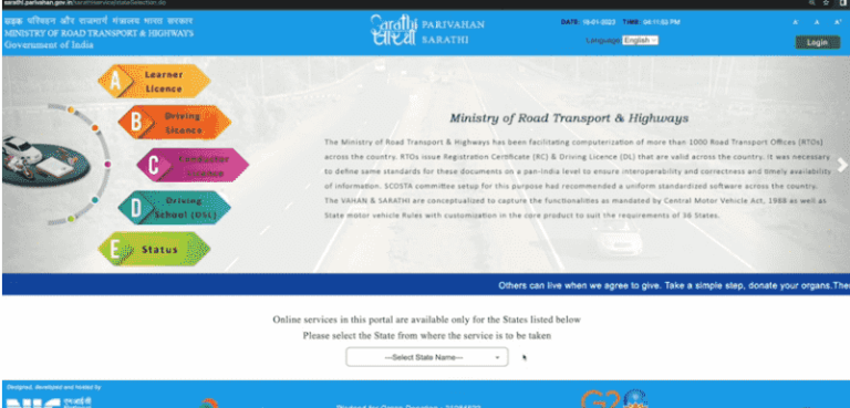 • सबसे पहले Parivahan Sewa की आधिकारिक वेबसाइट पर जाएं और होम पेज खोलें।