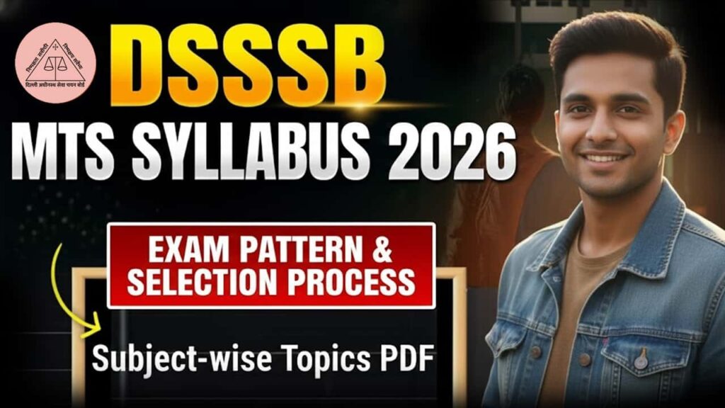 यदि आप भी DSSSB MTS Syllabus 2026 PDF डाउनलोड करना चाहते हैं या परीक्षा की सुनियोजित और सही रणनीति के साथ तैयारी करना चाहते हैं, तो इस लेख को अंत तक ध्यानपूर्वक पढ़ें। इसमें हम इस भर्ती परीक्षा के पैटर्न और परीक्षा के सिलेबस से जुड़ी हर एक जानकारी को पूरे विस्तृत में बताए हुए है। इसलिए आप इसे पूरे ध्यान से अंत तक पढ़ें।