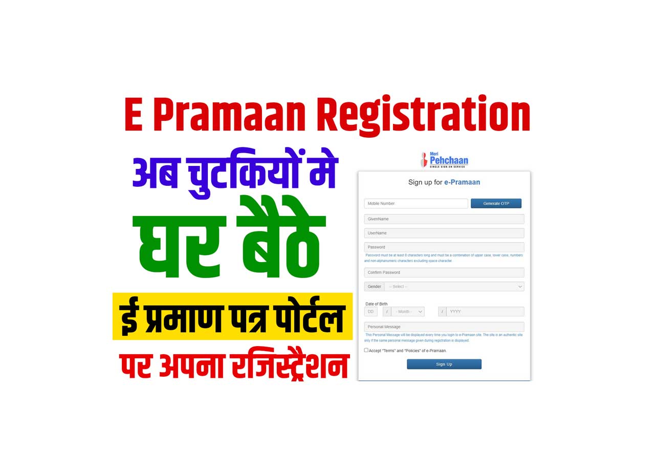 E Pramaan Registration: यदि आप भी घर बैठे सरकारी ई प्रमाण पोर्टल पर अलग – अलग सरकारी योजनाओं व सरकारी सेवाओं का लाभ पाने हेतु अपना – अपना रजिस्ट्रैशन करना चाहते है और जानना चाहते है कि, रजिस्ट्रैशन कैसे करें तो हमारा यह आर्टिकल केवल और केवल आपके लिए है जिसमे हम, आपको विस्तार से E Pramaan Registration करने की पूरी प्रक्रिया के बारे मे बतायेगें जिसके लिए आपको धैर्यपूर्वक इस आर्टिकल को पढ़ना होगा ताकि आप पूरी – पूरी जानकारी प्राप्त कर सकें।