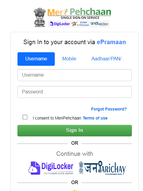 The e-Pramaan Meri Pehchaan Single Signal-On characteristic offers registered customers a single window entry to all authorities companies minimising their efforts in sustaining a number of usernames & credentials.
