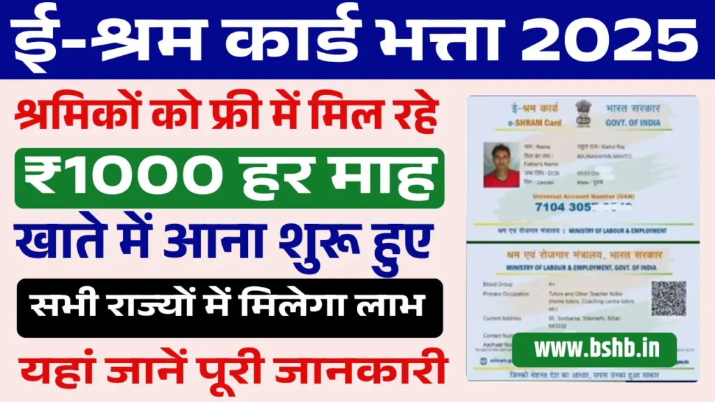 The submit E Shram Card Bhatta 2025: श्रमिकों को हर माह ₹1000 के लिए आवेदन शुरू, यहां से करे चेक ! appeared first on BSHB.IN.