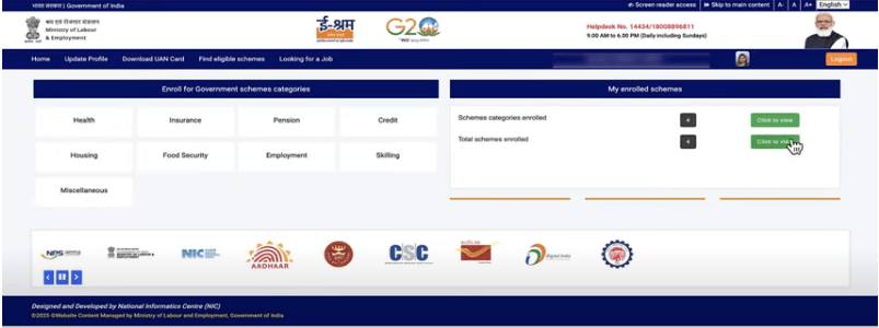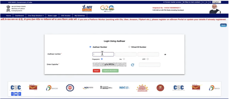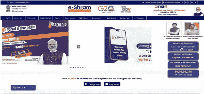 • E Shram Card Ko Replace Kaise Kare अर्थात् E Shram Card Ko Replace Kaise Kare On-line के लिए सबसे पहले आपको इसकी Official Web site के होम – पेज पर आना होगा जो कि, इस प्रकार का होगा –