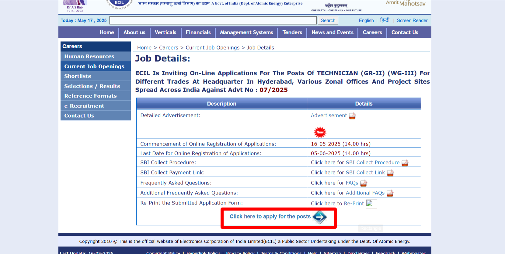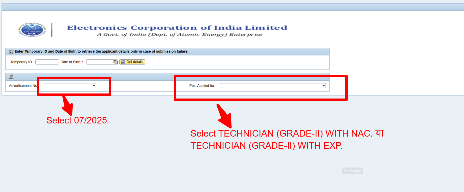 हमारे देश के जो भी इच्छुक उम्मीदवार ECIL Technician Grade II Bharti 2025 के तहत अपना ऑनलाइन आवेदन करना चाहते हैं वह हमारे द्वारा नीचे बताई गई आवेदन प्रक्रिया को फॉलो कर सकते हैं –