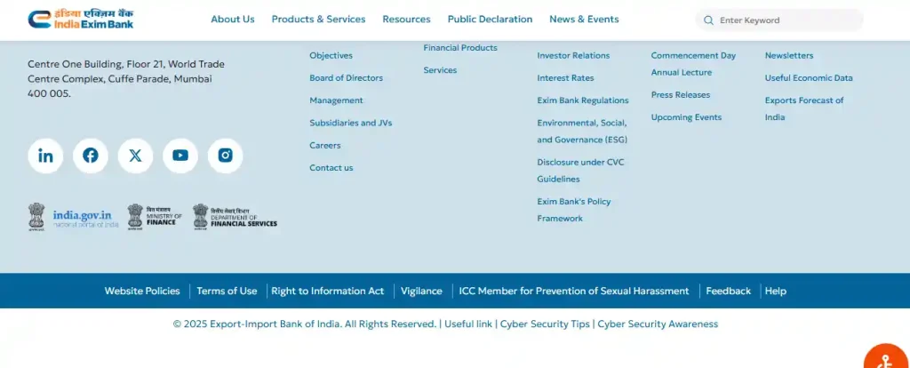 - सबसे पहले Exim Financial institution की वेबसाइट eximbankindia.in पर जाएं।
