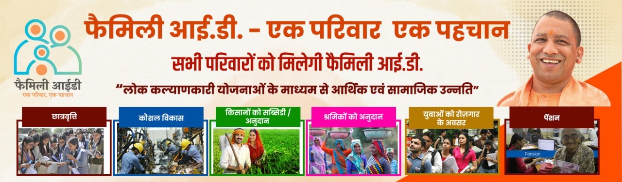 • ऐसे परिवार जिनके पास राशन कार्ड उपलब्‍ध है, उनकी राशन कार्ड संख्‍या ही फैमिली आई0डी0 होगी तथा उनको फैमिली आई0डी0 बनवाने की आवश्‍यकता नहीं है। उनके द्वारा रजिस्ट्रेशन के उपरान्त आधार संख्या डालकर फैमिली आई0डी0 डाउनलोड/प्रिन्ट की जा सकती है,