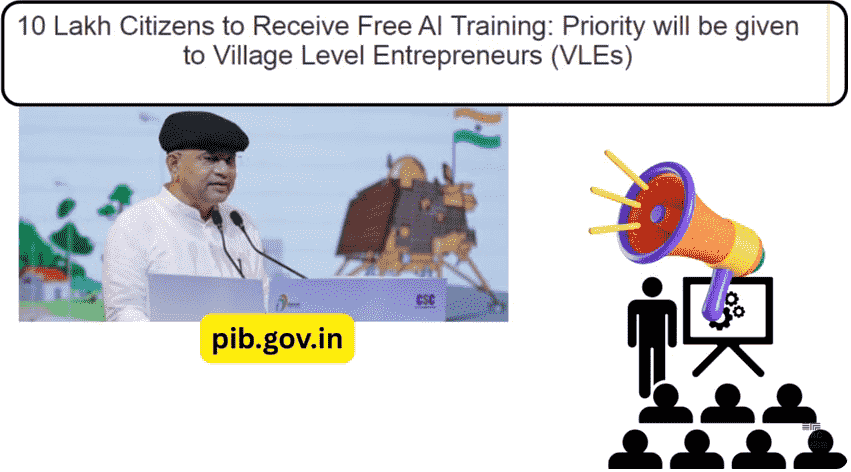 - ताजा मिली जानकारी के मुताबिक आपको बताना चाहते है कि, केंद्र सरकार द्धारा यह घोषणा की गई है कि, जल्द ही पूरे 10 लाख नागरिको को बिलकुल फ्री मे AI की ट्रैनिंग दी जाएगी जिसकी शुरुआत VLE’s को प्राथमिकता देने के साथ की जाएगी।