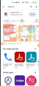 • यहां पर आपको सर्च बॉक्स मे indian Oil App को सर्च करना होगा जिसके बाद आपको एप्प मिले जायेगा जो कि,ओ इस प्रकार का होगा –