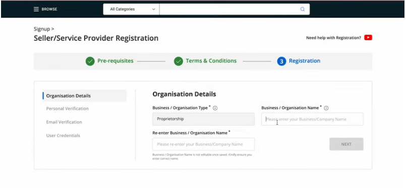 GEM Portal Vendor Registration |