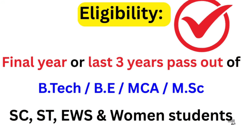 • विद्यार्थी, B.Tech / B.E / MCA / M.Sc के अन्तिम वर्ष की पढ़ाई कर रहा हो या पासआउट हो और