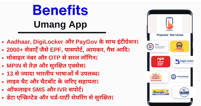 • इस एप्प की मदद से आप EPF Withdrawal कर सकते है, पैन कार्ड के लिए आवेदन कर सकते है, पासपोर्ट के लिए आवेदन कर सकते है और साथ ही साथ अन्य कई सरकारी सेवाओं का लाभ प्राप्त कर सकते है।