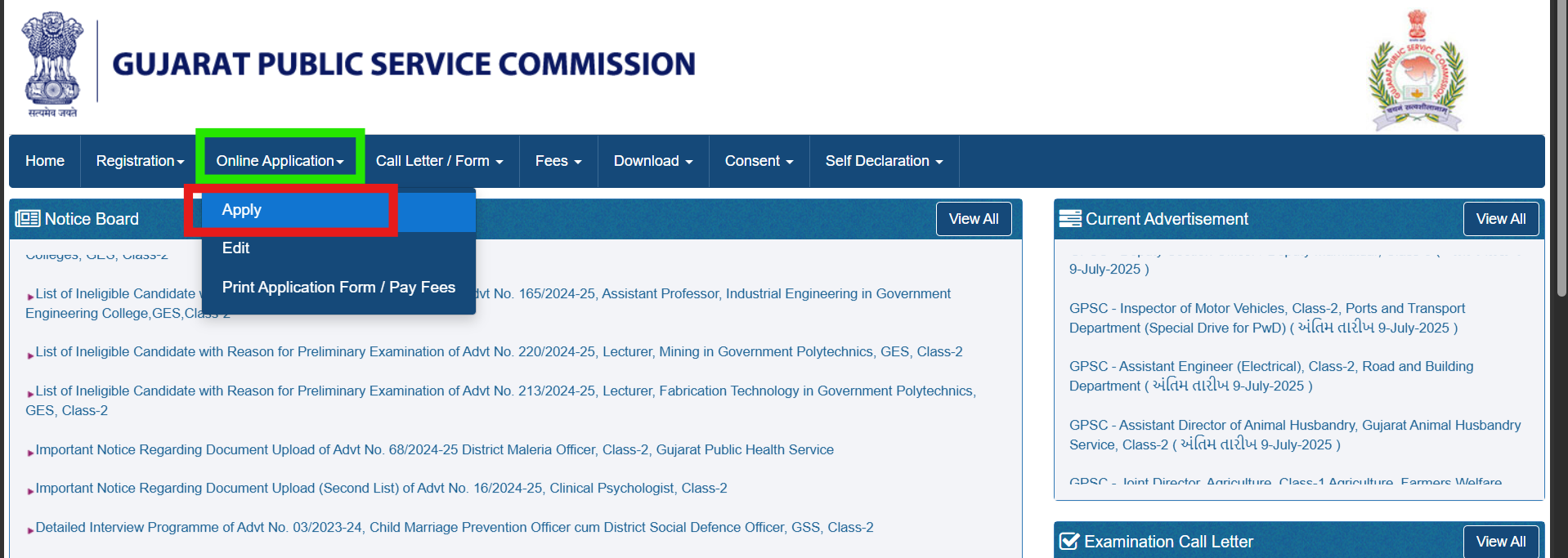 - भर्ती के तहत आपको अपना आवेदन करने के लिए सबसे पहले GPSC Ojas Portal की आधिकारिक वेबसाइट पर जाना होगा।