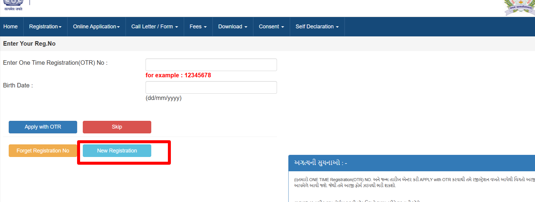 - आपको इस रजिस्ट्रेशन फॉर्म को भरकर अपना OTR रजिस्ट्रेशन कर लेना है और पोर्टल की लॉगिन डिटेल्स को प्राप्त कर लेना है।