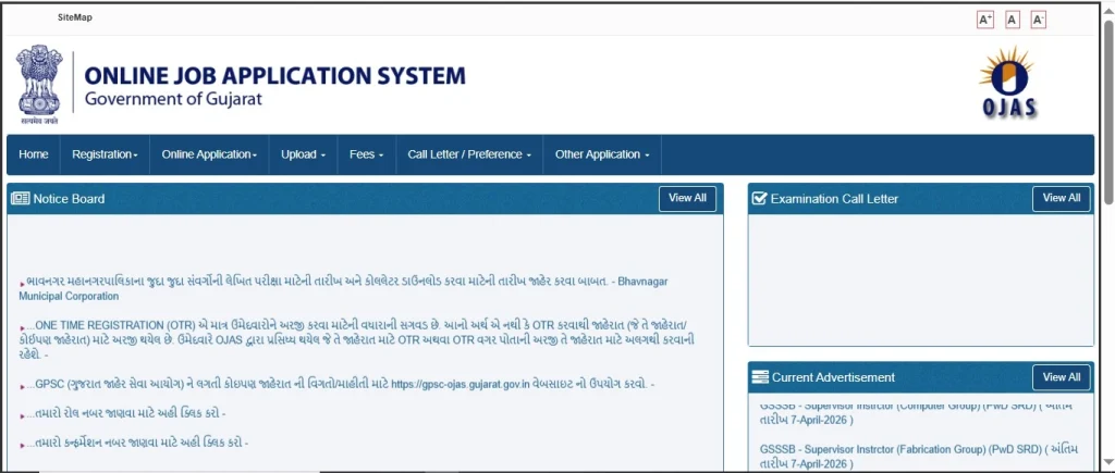 - सबसे पहले OJAS की आधिकारिक वेबसाइट ojas.gujarat.gov.in पर जाएं।