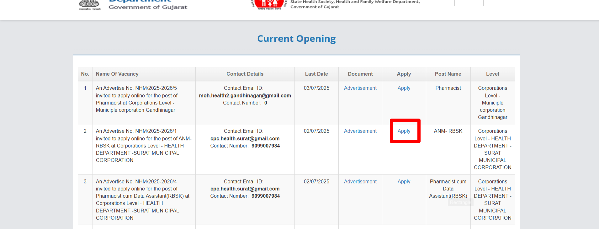 Gujarat NHM Emptiness Notification 2025 Submit Particulars