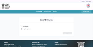 • होम – पेज पर आने के बाद आपको Create ABHA quantity का ऑप्शन मिलेगा जिस पर आपको क्लिक करना होगा,