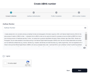 “text”: “irst and foremost, go to the National Digital Health Mission’s official website, ndhm.gov.in. On Create Health ID, select the Unique Digital Health Card option. You must input your Aadhaar number and then confirm by submitting an OTP. When you provide a mobile number, you must verify it using an OTP.”