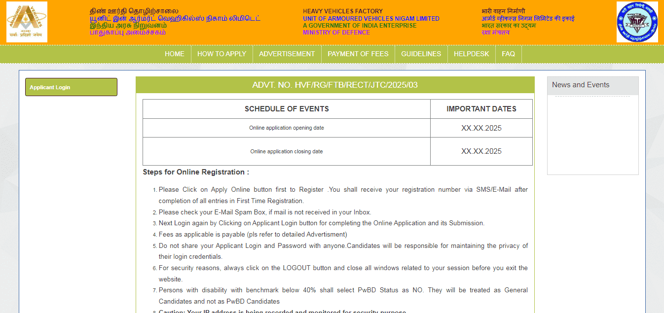 Step 2 – Login & Apply Online In Heavy Vehicles Factory Recruitment 2025