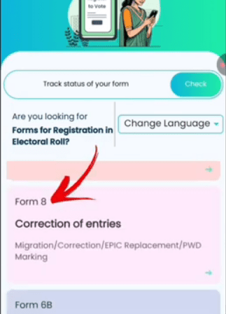 - अब यहां पर आपको Kind 8 Correction Of Entries का विकल्प मिलेगा जिस पर आपको क्लिक करना होगा,