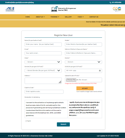 All CSC VLEs are eligible to turn out to be an authorized VLE beneath Telecentre Entrepreneur Course (TEC).