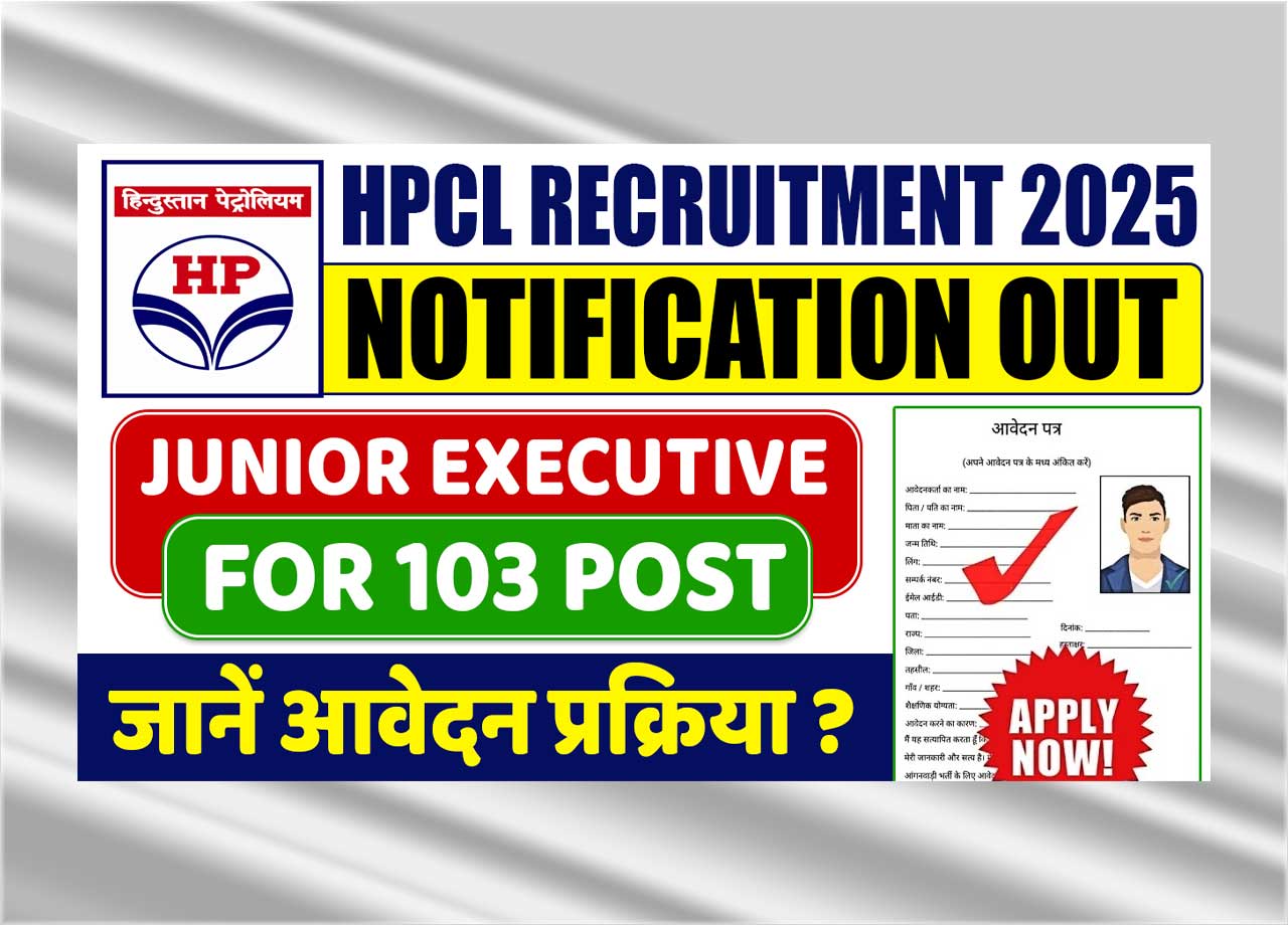 HPCL Recruitment 2025:- क्या आप सरकारी नौकरी की तलाश में हैं, वो भी एक प्रतिष्ठित सरकारी कंपनी में? तो आपके लिए एक बेहतरीन अवसर आया है! हिंदुस्तान पेट्रोलियम कॉर्पोरेशन लिमिटेड (HPCL)ने हाल ही में 103 जूनियर एग्जीक्यूटिव पदों पर भर्ती के लिए आधिकारिक नोटिफिकेशन जारी किया है।