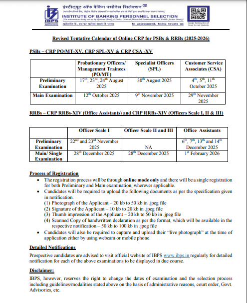 Primary Particulars of IBPS Examination Calendar 2025-26?