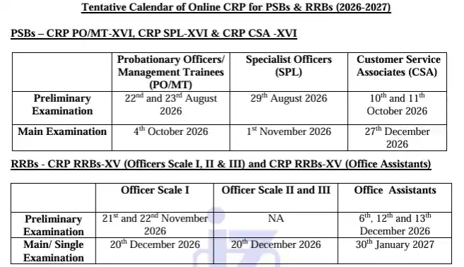 Tentative Calendar of On-line CRP for PSBs & RRBs (2026-2027) |