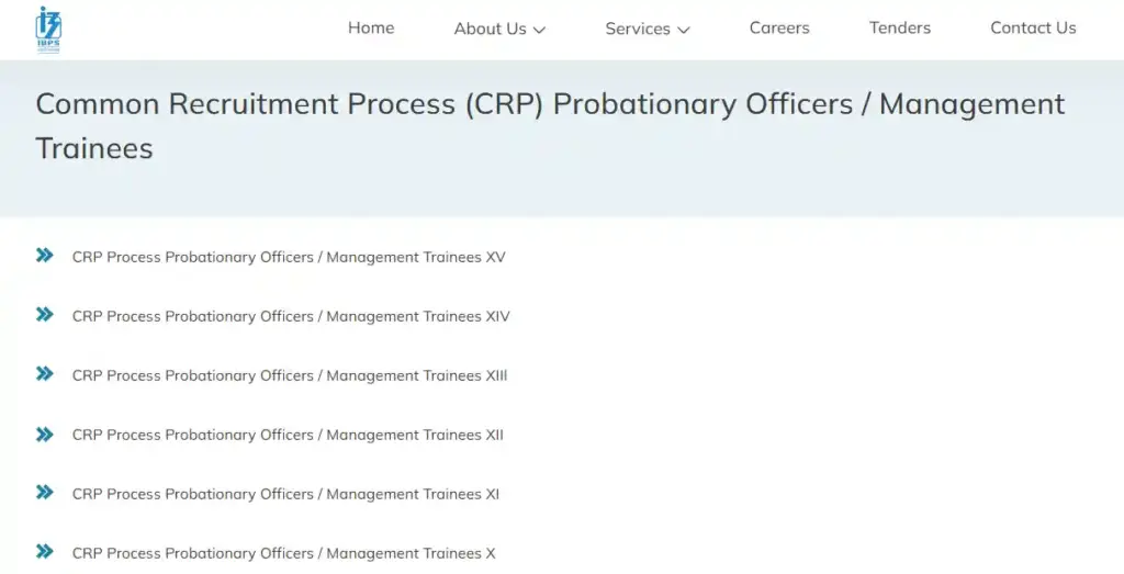 - रिजल्ट ढूंढें: फिर जिस ईयर का रिजल्ट चाहिए उस पर क्लिक करें, जैसे ‘CRP Course of Probationary Officers / Administration Trainees XV’ ये लेटेस्ट 2025 के लिए है।