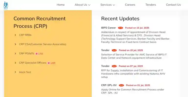 - आधिकारिक वेबसाइट पर जाएं: सबसे पहले IBPS की आधिकारिक वेबसाइट www.ibps.in पर जाएं।